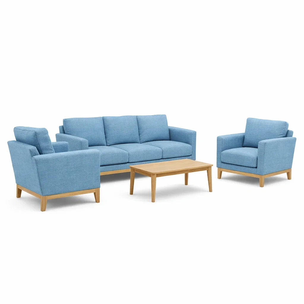 Liste des produits : 1 canapé 3 places, 2 fauteuils, 1 table basse